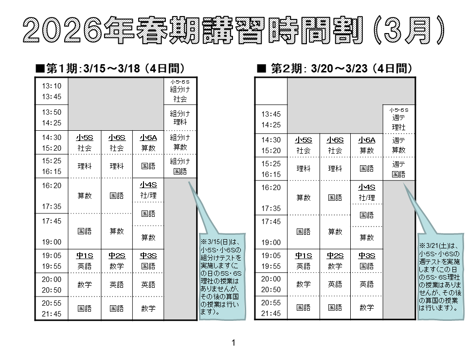 この春期講習の第一のねらいは「前学年で学んだ既習事項の完全制覇」にあります。
